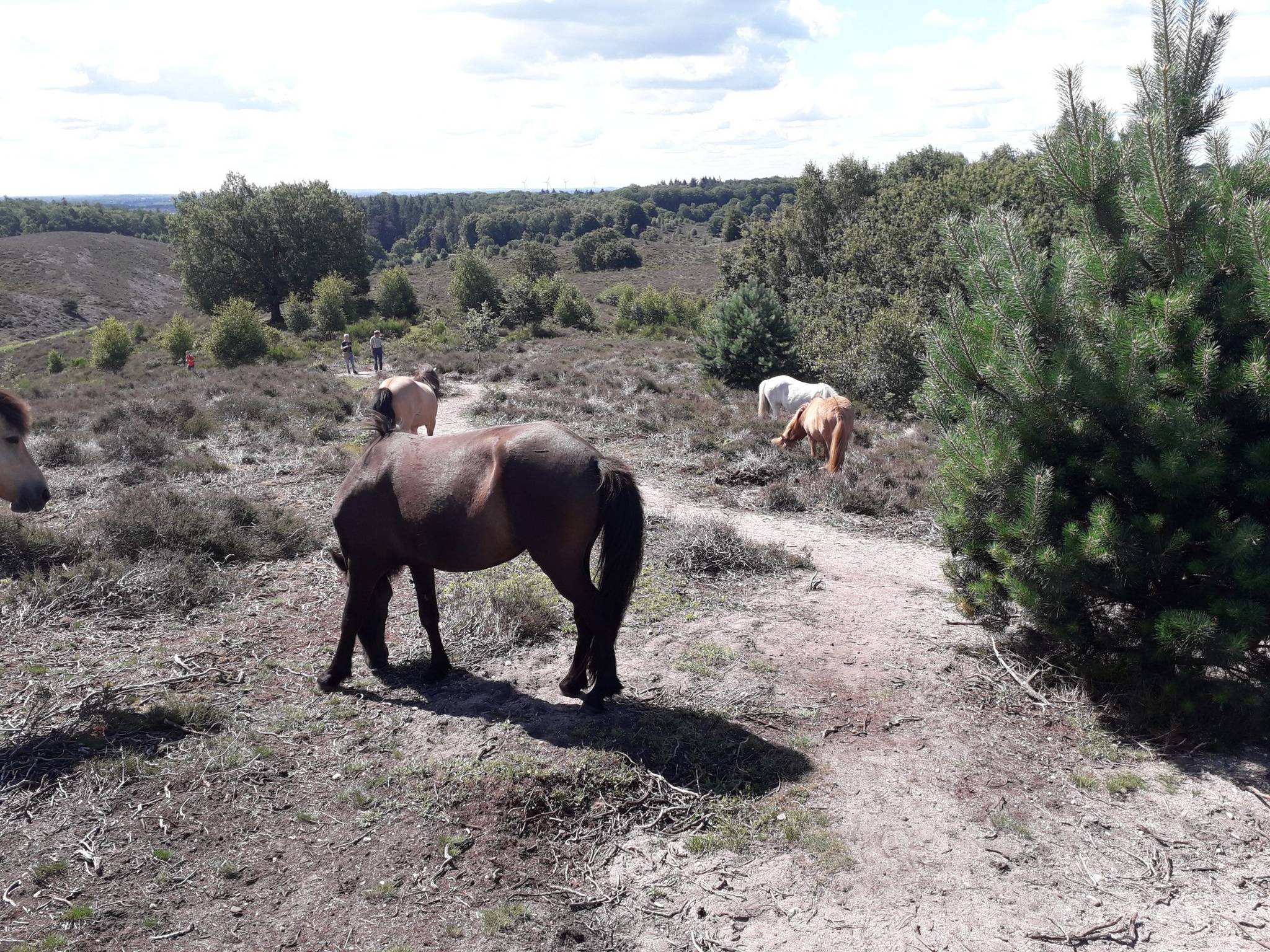 We ontmoetten elkaar vanochtend op het station Rheden en van daaruit liepen we een rondje over de Veluwe, maar dan wel een stuk dat voor mij nog onbekend was. Ook dit was te danken aan het boekje van Ab, het is al de derde wandeling daaruit. Over de Posbank ging het nog over vrij bekend terrein, maar daarna weken we af van de gebaande paden en zagen we een Veluwe vol loofbomen en niet zo droog. Er stond ook een verlaten Duitse uitkijkpost, en verderop de oude brandtoren, waar werd uitgekeken over de Veluwe om brand snel te kunnen inperken.